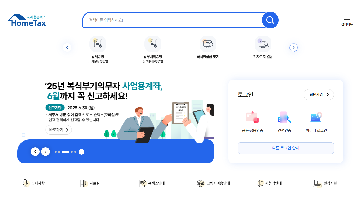 1. 홈택스 로그인 → 세금신고 → 종합소득세 신고