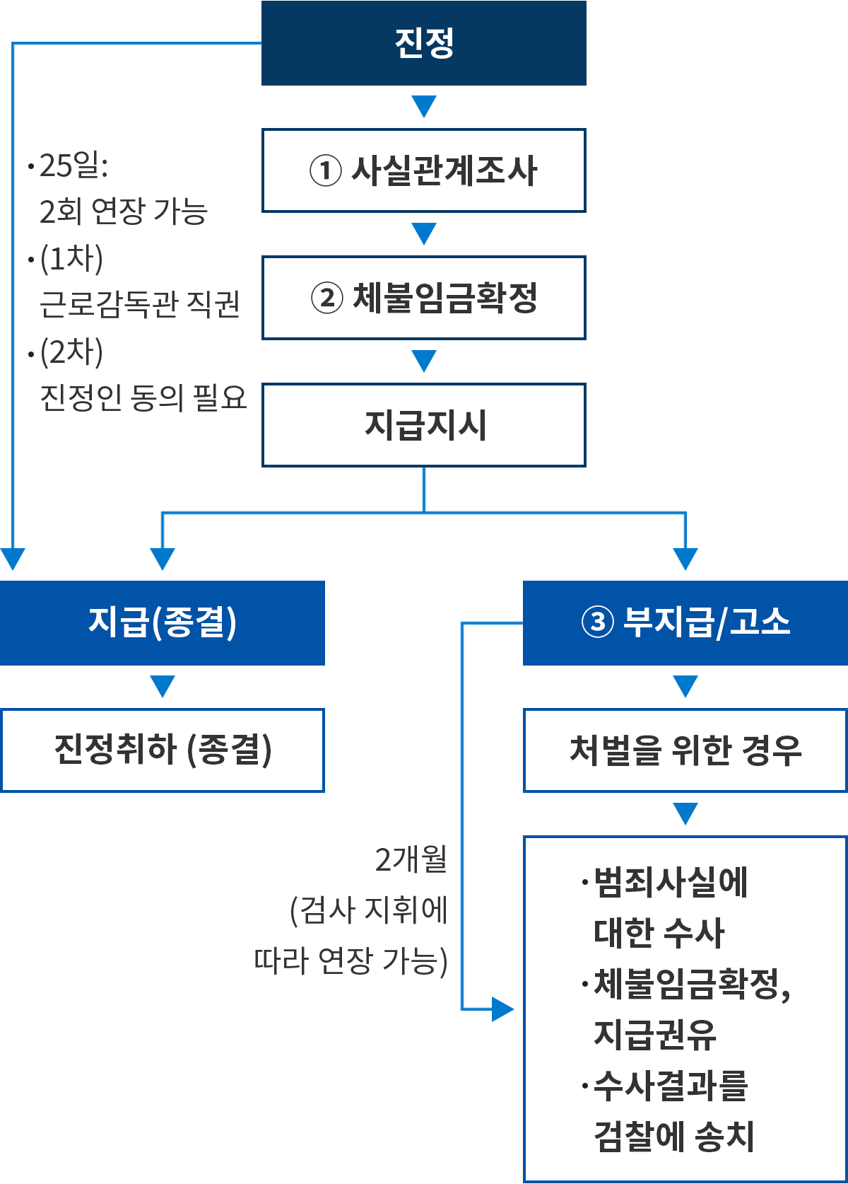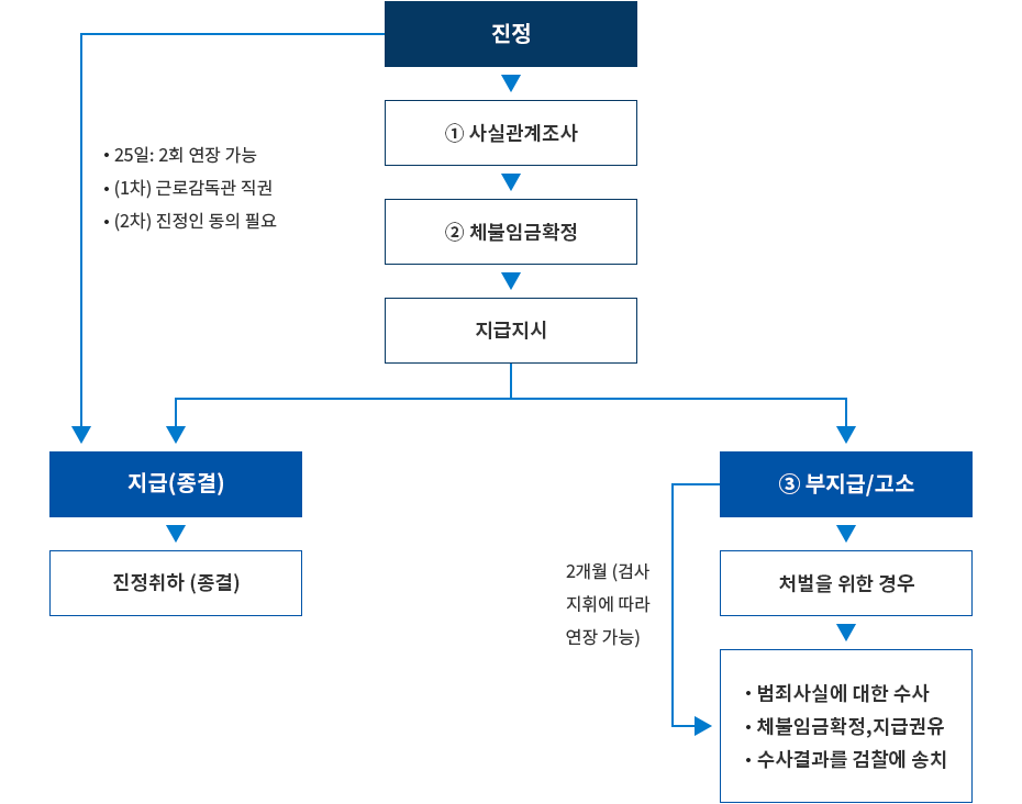 - 지급 유도 또는 합의 권고 (조정 불가 시 바로 송치 가능) - 4단계: 사업주에게 지급 명령 또는 사법 조치