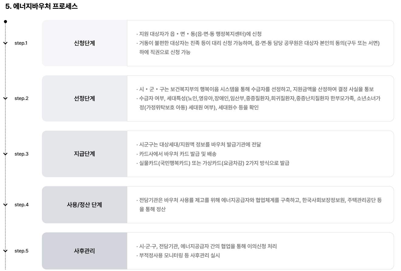 에너지 바우처는 저소득 가구에 전기, 도시가스, 연탄, 등유 등 생활 필수 에너지 이용에 필요한 비용을 지원하는 제도로, 계절에 따라 여름·겨울 바우처로 구분되어 지급됩니다.