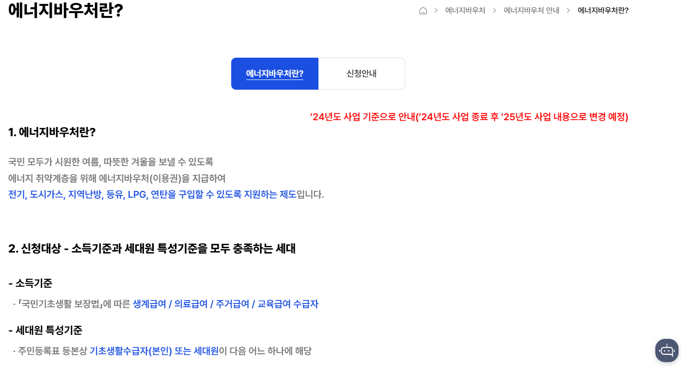 전기세, 가스비, 난방비가 걱정되는 계절, 정부가 취약계층의 에너지 복지를 책임집니다. ‘에너지 바우처’는 기초생활수급자 및 차상위계층 등 에너지 취약계층이 전기·도시가스·등유 등을 저렴하게 사용할 수 있도록 정부가 실질적인 바우처를 지급하는 제도입니다.