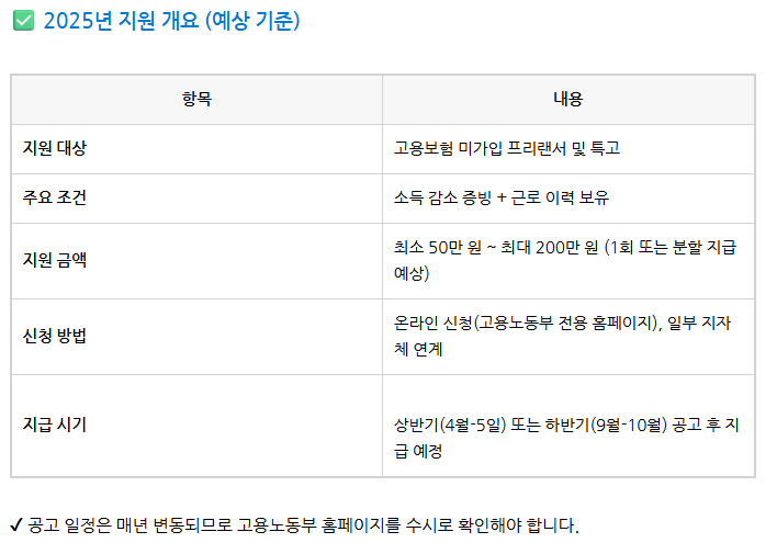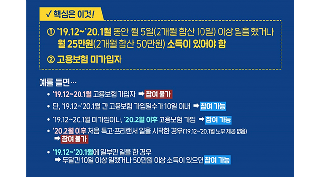 | 대상자 | 특고·프리랜서, 플랫폼노동자, 일용직 근로자 |