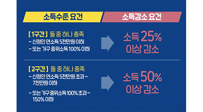 | 소득 조건 | 기준 소득 대비 25% 이상 감소 |