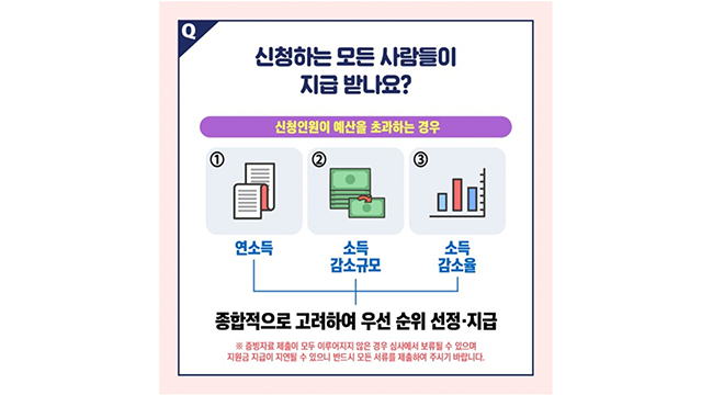 가능합니다. 단, 소득 감소 증빙이 명확해야 합니다. - Q3. 중복 신청 시 불이익은 있나요?