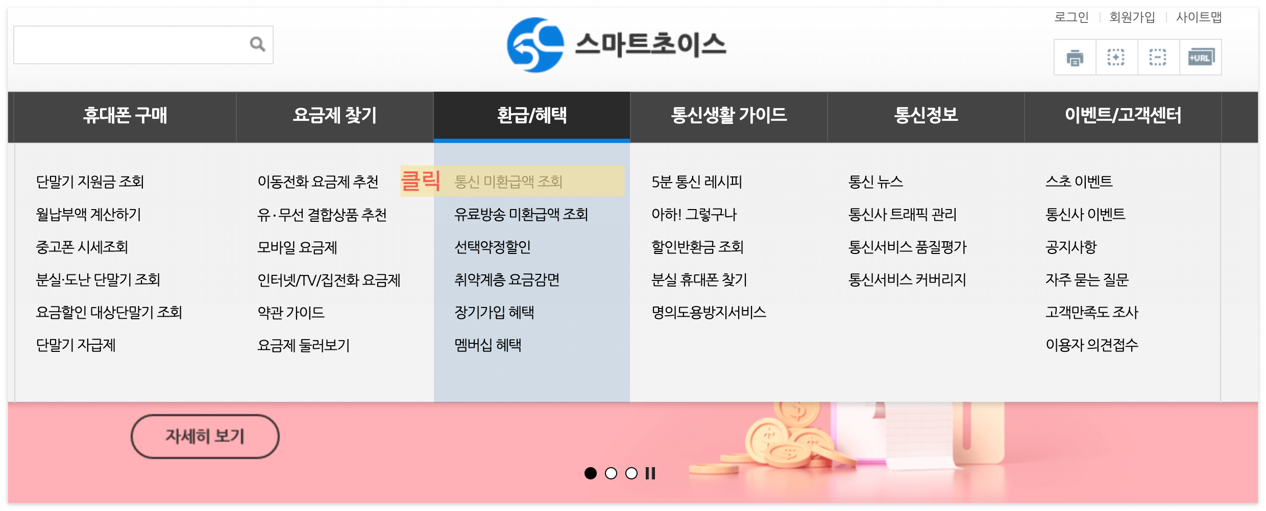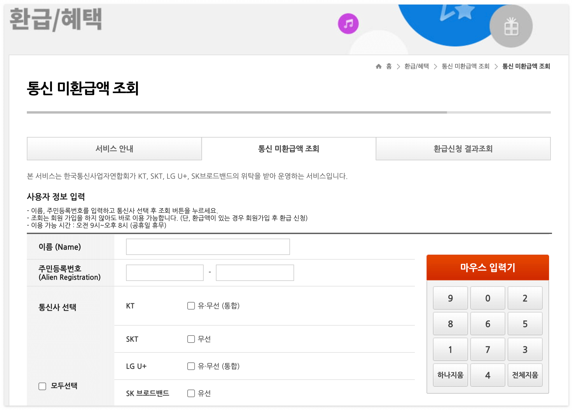 | LGU+ | 홈페이지 환급 신청 메뉴 이용 | 101 |